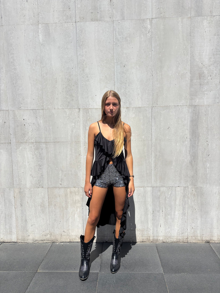 SHORT GINEBRA PLATA LENTEJUELAS